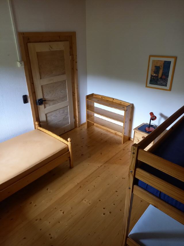 Ein Schalfzimmer (ein Hochbett und ein Einzelbett) für 3 Personen
